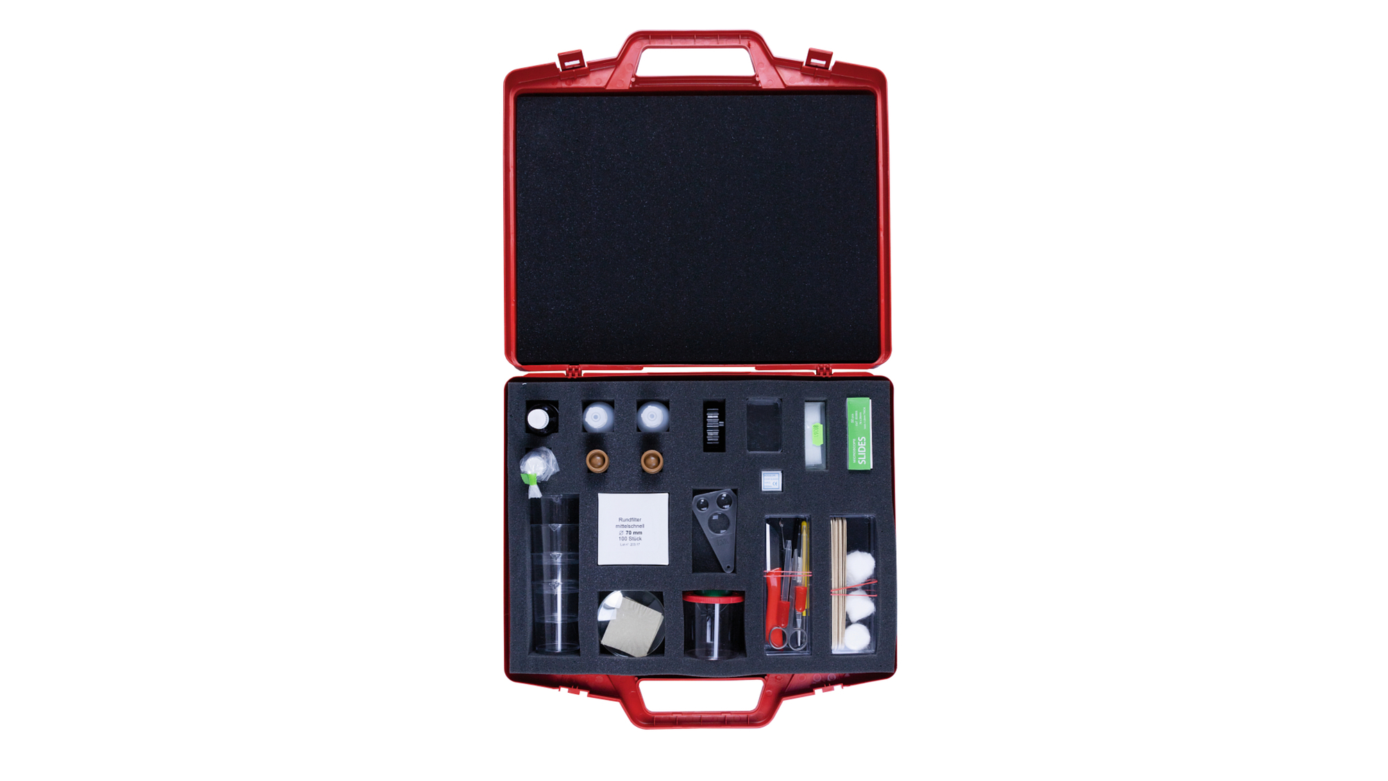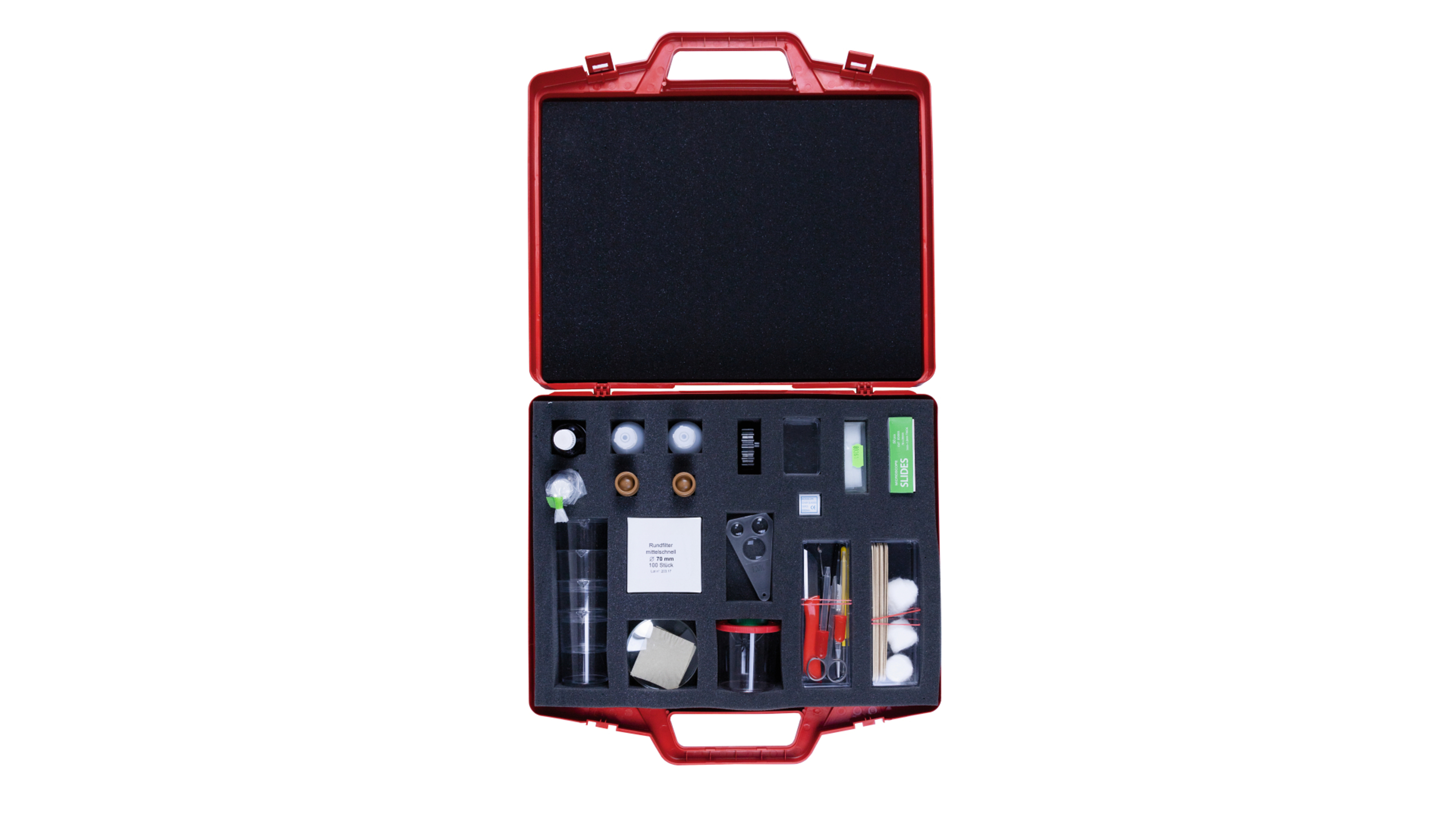 Este kit contém equipamentos e recursos para atividades experimentais sobre métodos e procedimentos para observar pequenos objetos. Depois da observação inicial de pequenos objetos usando lupas de aumento de mão, o kit dispões de numerosas atividades experimentais que ensinam o aluno passo-a-passo como preparar pequenos objetos para investigações com o uso de um microscópio.